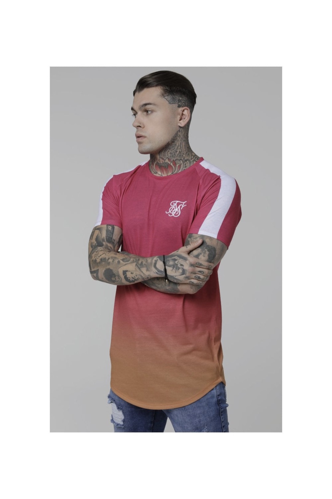 SIKSILK Camiseta » Raglan Fade » color rosa degradado